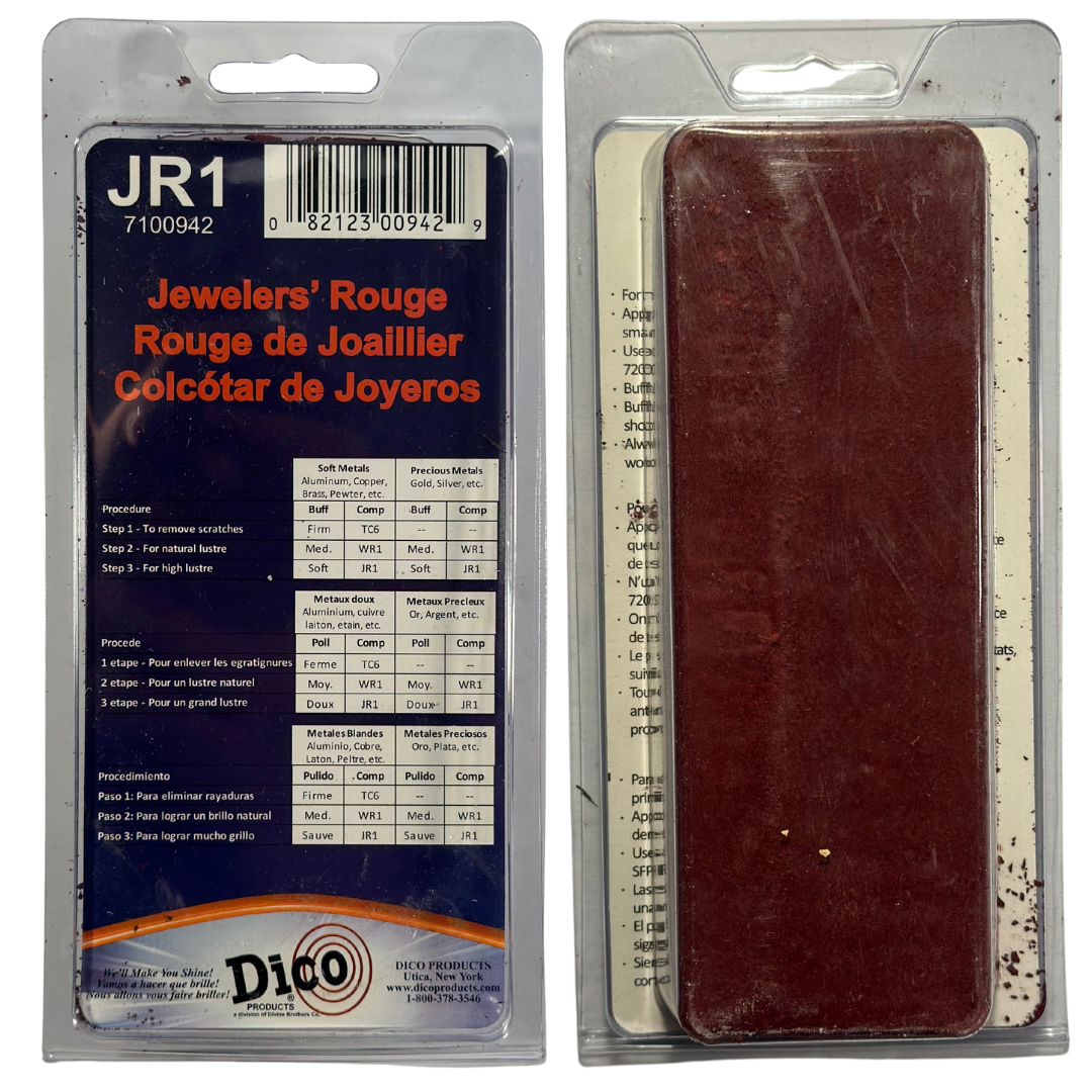 JR1 Jewelers Red Rouge Buffing Compound. A premium compound for the finest finish on precious metals such as gold,& silver. Can also be used for a final finish on brass or copper.